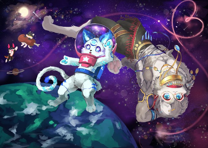 슬럼프 극복하고 그린 팬아트입니다. @YEORIRIL @Bobchaaaa @4Bfox @funzinnu 우주복 여릴님과 우주여신 너머의 파누와 쉴드