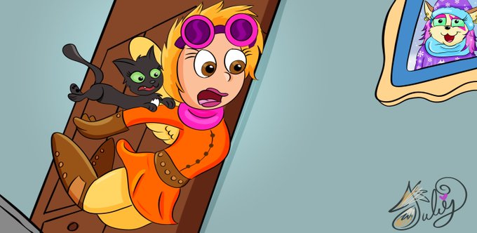 @RutherArts This is Claire Kitty. She's the lead singer of a series I'm co-working on called @FemmeFurtale- she's bubbly, fun, loves being the center of attention. She may come off as ditzy but she's actually very booksmart! She has a twin brother named Marshall & a little sister Allison.