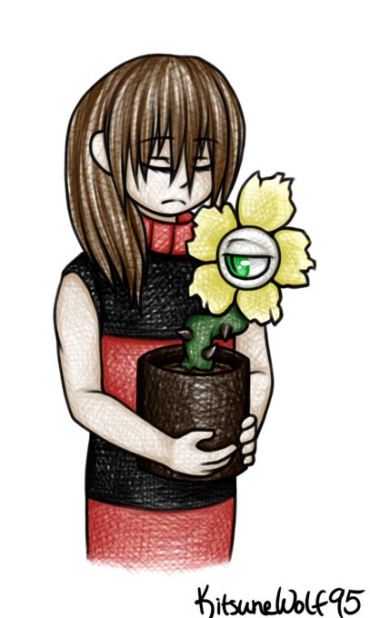 Some doodles I made of my Horrorfell beans, as well as Frisk and Flowey!