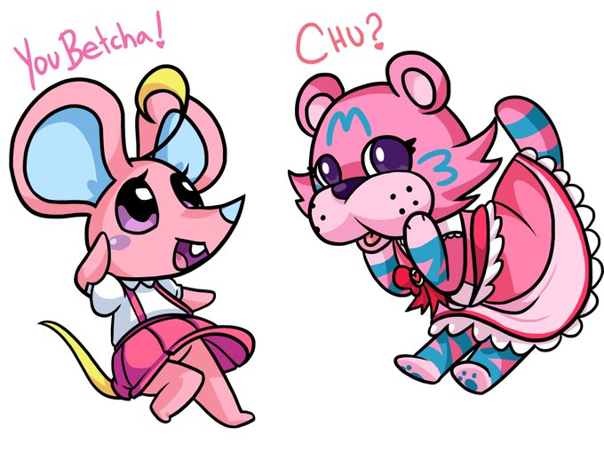 The results of my Animal Crossing meme! The mouse is from Facebook suggestions, the and tiger from Twitter. They names are Kandy and Polka!
