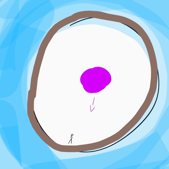 @AniSalvaje A ver, entiendo lo que dices. Igual es que omito un dato medio importante aquí porque es más fácil decir que la gravedad funciona al revés y ya. Muy simple, el mundo es así. El mundo es una esfera hueca y la gente vive dentro de esta, no sobre esta.
