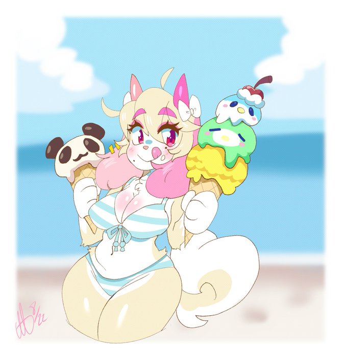@CottonPastry This is Latte. She’s a half demon dog who likes to bake and stream herself cooking.