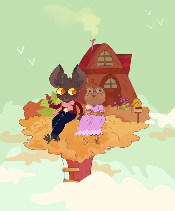 C'est inspiré de l'art de Wenyi Geng après que j'ai vu par hasard son dessin avec une cabane, un arbre et un raton laveur 🌳