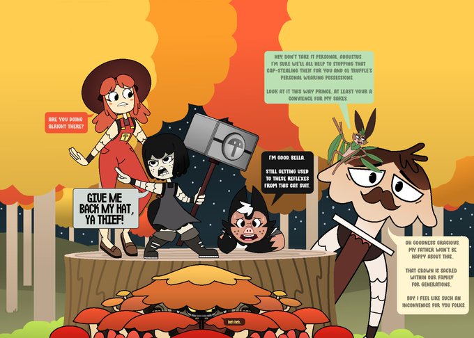@hgatoart Thanks! If you're curious on my favorites in mind? Mine would be my earliest two being Bella (the painter) and Truffle (the blacksmith). Also there's Keely (the blue tailor) as the picture has him sitting upon Truffle's hammer which is her weapon.