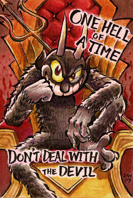 先日カップヘッドを、あるモードでクリアしたので記念にデビル様を描きました。😈 描いてて楽しい要素しかないなこの人は…☺️✨ #カップヘッド #Cuphead