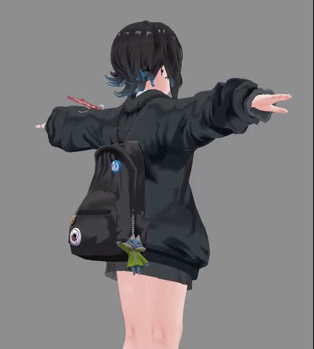 喉を白くしたのと、正面と後頭部のテクスチャの繋ぎ目をゴリ押しでごまかし。あと尻尾を立たせて重心を上気味に。 この生き物はなんなのだ
