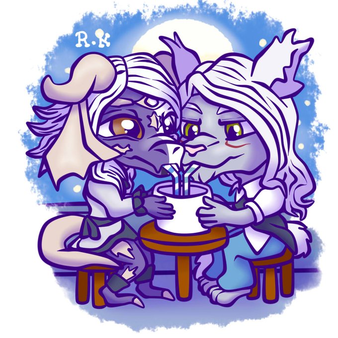 Dibuje a Konaco y al pj de Berurnor tomando algo juntitos uwu