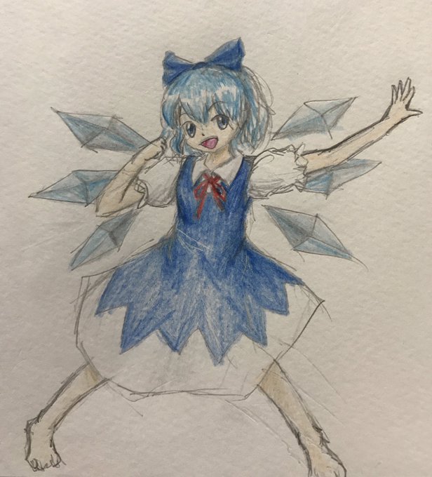 ということでワンドロ終わりに、30~40分の突貫工事でチルノ描きました!!