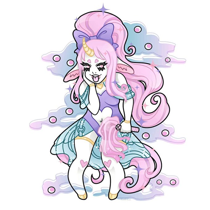 This is for contest! I wanted to capture her silly side with her whip and clouds sprouting googly eyes! Better description is on my Insta!