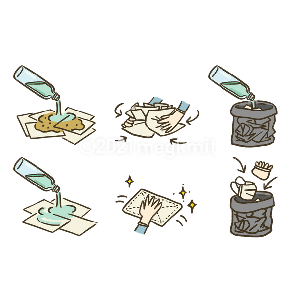 実は少し嘔吐恐怖の気があり、これまで避けていましたが、必要なもの・大事なことですので嘔吐処理にまつわるイラストをご用意しました。手順など、覚えた方がいいことに挿絵の使用はもってこいです。お使いいただけたら嬉しいです!リプにダウンロードリンク貼っておきます〜
