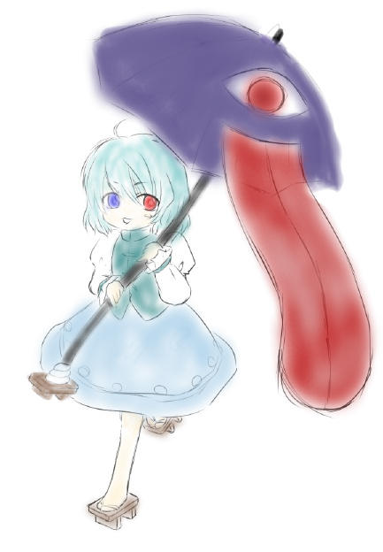 いつかこれ絶対仕上げようっていう決意表明的な感じで。さっきのツイートで言ってた厚塗り練習絵。キャプッた奴だから画質悪そうだけどキニシナイ。何で小傘なのかって? 昨日の絵茶で描いた中で一番気に入ったからだよ・・・。ポーズもほぼそのまんま。