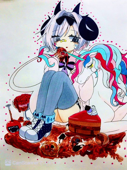 ⚠️血糊注意⚠️ 大学の子達とのキャラ被りデザインゲームの絵。三白眼っぽくないね。 手ぶれ補正死んだので急いでアナログで描き直した。 キャラデザの参加してる子はネタバレ(?)なります