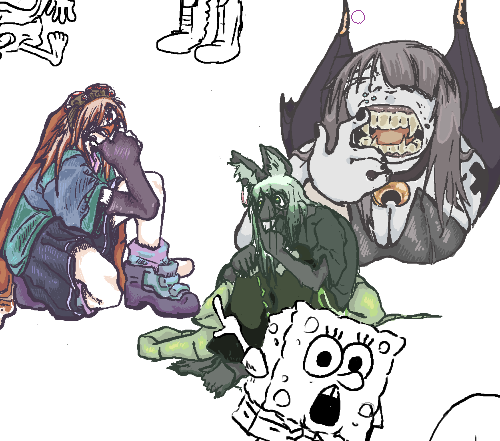 Drawpile results from today. Featuring @schiive @Marysquidd @FilsonInk and I. Guess who drew what.