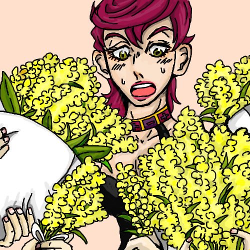 ミモザの日② この間のミモザの絵の続き フーゴが増えたよ 描いて再度理解したけど、すごい服着てんな、君。