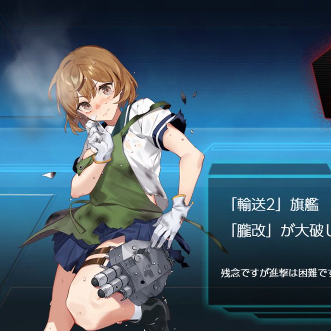 なんかジャケット絵みたいな中破画が取れた #吹き飛ぶ資源