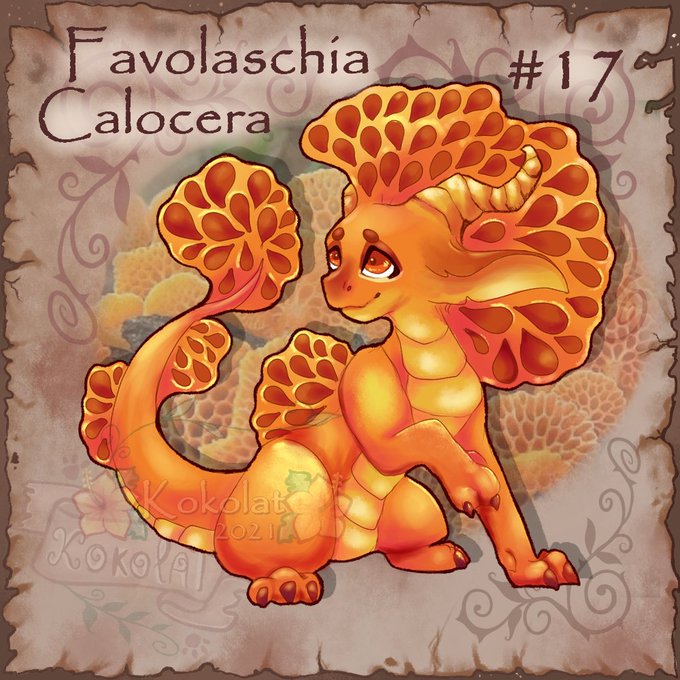 Hey les nocturnes ! Voici le 17 ème #mushroomsmaugust2021 Le Favolaschia Calocera , On dirait un dragon champi au miel ! #dragon #dracofungus #Smaugust2021 #mushroomsmaugust #mushroom #dragonart #dessin #drawing #art