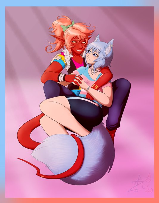 Tetsu and Zylum having some wholesome cuddles in some cloudy dimension because I still suck at backgrounds lol