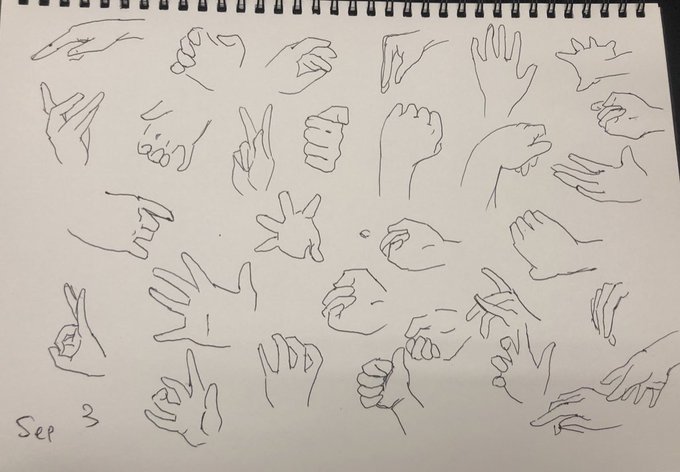 最近は毎日手の30秒クロッキーx30体、描いています💪隙間時間にちょこちょこ二次創作絵(?)も描きます!(最近は低浮上気味です😭)