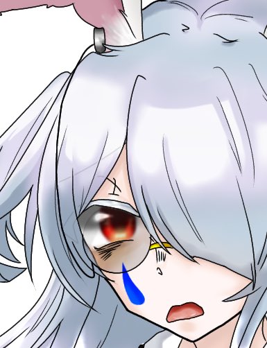 白うさぎのモノクルもどきのヒモの行き先はうさ耳の下側です ここに留め具みたいなのがある感じです 利便性が良いかは知りません