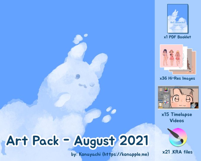 In addition to monthly art summaries I make every month since January this year, starting on August 2021 I'll put up monthly Art Pack with lots of digital goodies: .PDF Booklet, hi-res illusts, timelapse videos and raw (.kra/.csp) layered files.