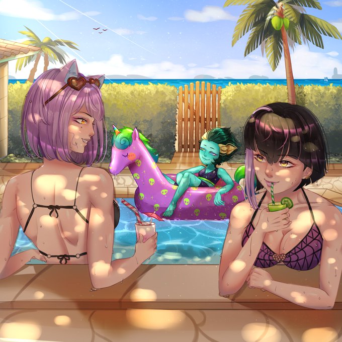 #Commission #commissionsopen #PoolParty #animegirl #beach