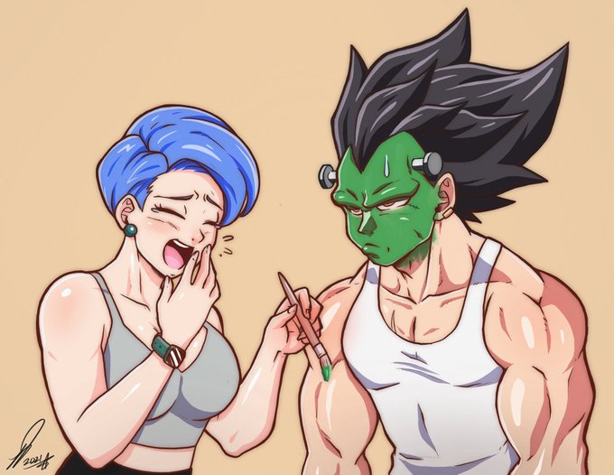A quick drawing for today! Bulma helping vegeta with his Halloween costume 🎃🧟♂️ #halloween2021