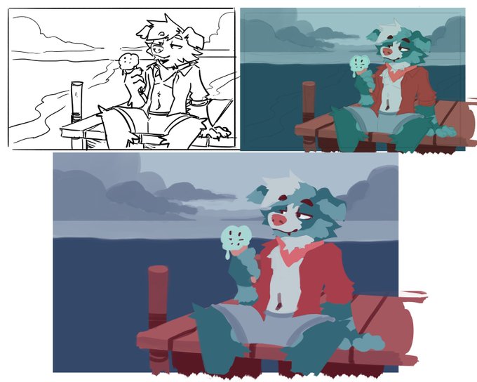 I've been asked for more wips sharing! Sketch > colours blocking > correcting hues