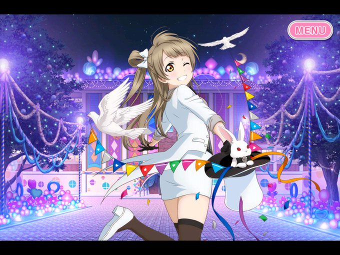 昨日のハロウィンに続いて星座のことりちゃんも覚醒出来てウチ幸せ〜 ことりちゃんの笑顔はみんなを幸せにする魔法。願いを叶える流れ星に似ていますね(・8・) これからも私の心の中で輝き続ける一番星でいて下さい