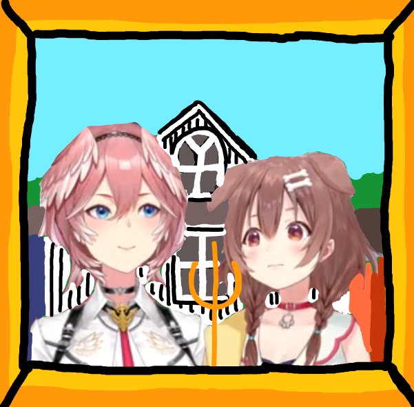 #イラスト #イラストの裏側 #ホロライブ美術館 この前のスクショして思った。アメリカンゴシックだ!🤣枠を塗り潰して細かく背景を描いて完成!!再現度高いでしょう?😊