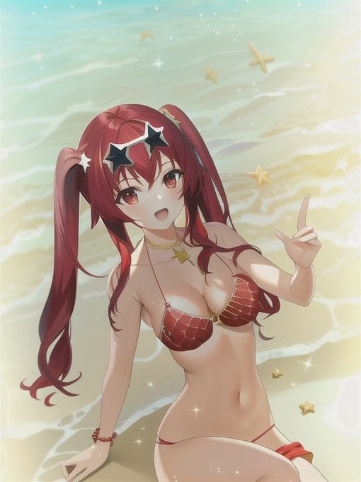 先月の水着ショットをイラスト化😎 3・4枚目の表情がウィンクに変わるとは…w