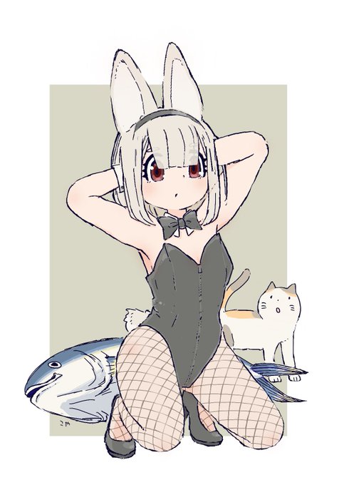 振り向きバニーと正面まぐろ #illustration #バニーの日 (Day 389)