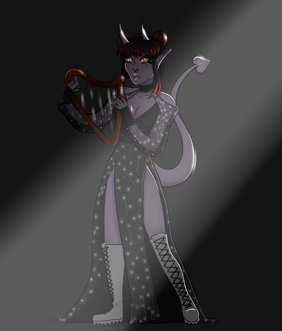 #tiefling #dungeonsanddragons #dnd #originalart #harp #bard #dndart