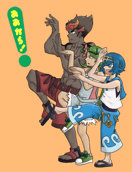 ああからな三人組でよつばと!パロ🏝️🏝️🏝️ 影とか付けたけどつけんのもいいなあ #よつばと #ポケモン #絵描きさんと繋がりたい #ポケモン絵描きさんと繋がりたい