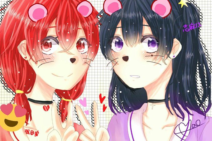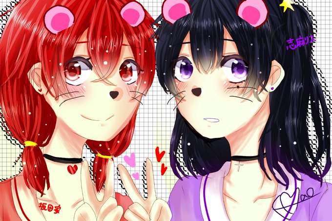 @kagamin8531 ヤッタァ━━━v(*´>ω<`*)v━━━ッ!! 私はデジタルで描くね👍女の子しかかけないけど…(( ちなみに下の子がオリキャラです! 目の色は赤色(( *ˊᗜˋ* )ゞデシ!