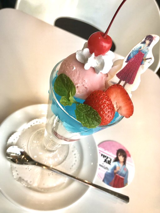 新サクラ大戦カフェに行ってきました 対象の品をオーダーするとコースターチャレンジ(抽選箱からくじ引き方式でコースターをゲット!)に挑戦できますよ ごはんも美味しくいただきました デザートにはパフェ! あと、記念に色紙をムリヤリ置いてきたので見てみてね!
