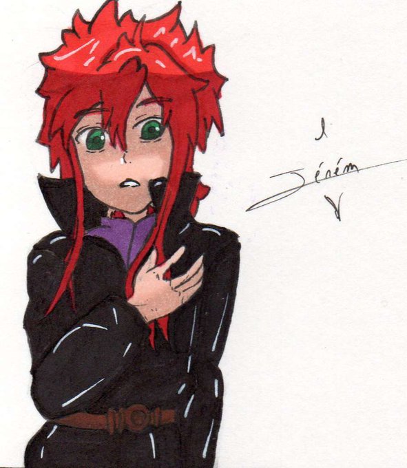 @Panose_wl Marius Misdirella, a special OC of mine who travels between worlds with his sister, his red hair is his true color, but he likes to hide himself by dying his hair light brown