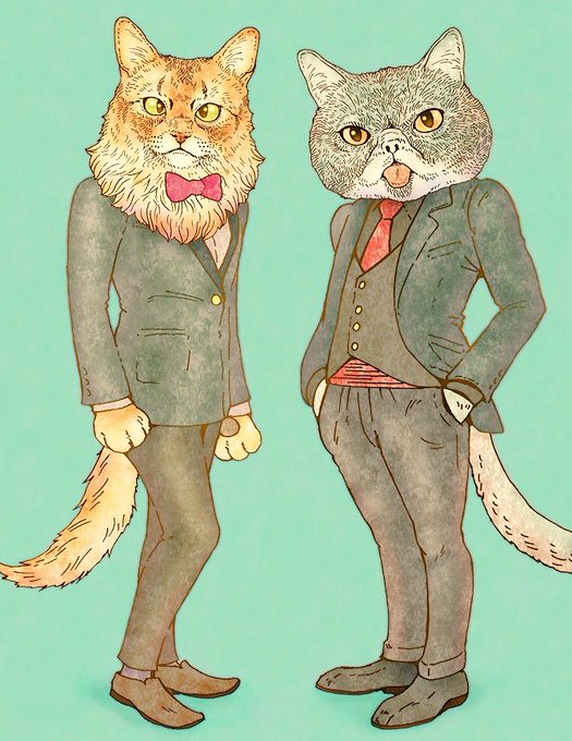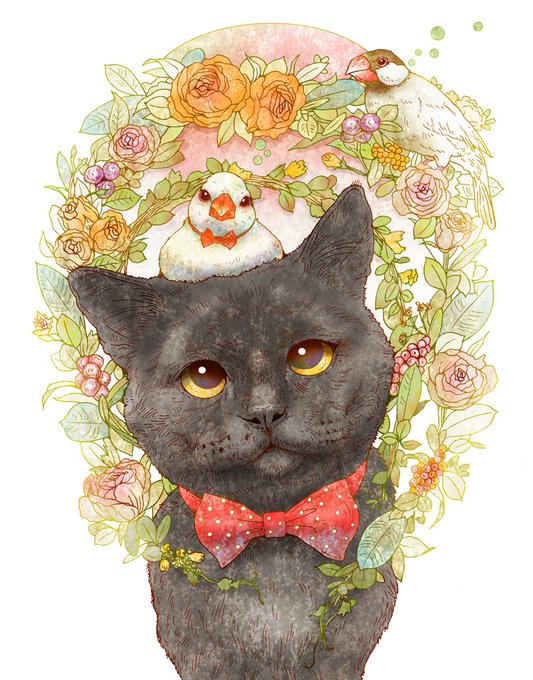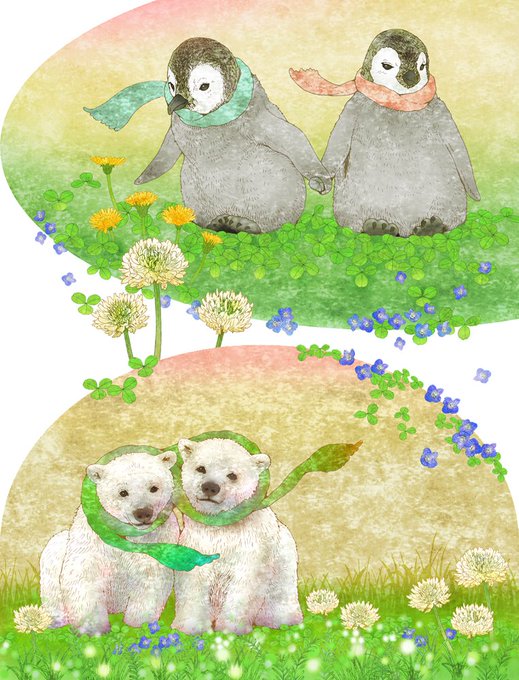 #皆さん線画と塗った後を見せてください ふくもりとポポ^^ どっちもかわいい( ^ω^ )