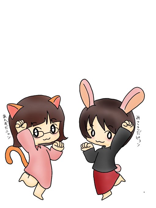 にゃーんなあんずちゃんとぴょんぴょんなみさきちゃん(*´︶`*)