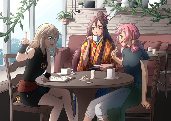 Aujourd'hui c'est l'anniversaire de @MHTigg alors avec @JennyMiki_ on s'est lancées sur une collab avec nos trois bébés, elle au line et moi à la couleur o/