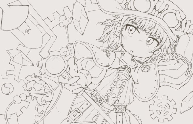 #今月描いた絵を晒そう ⚙️💜🌿🐈⬛