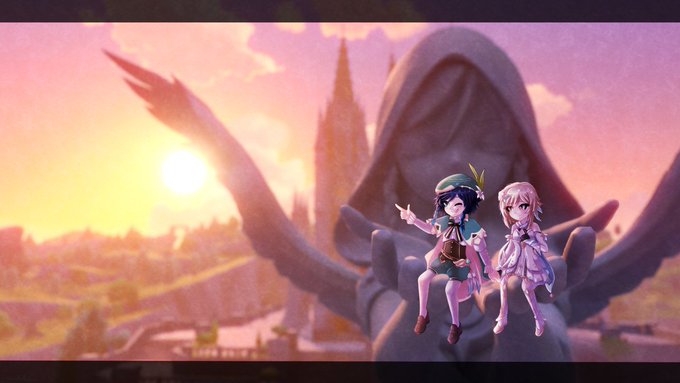Having a cozy time (made last year) #GenshinImpact #genshinimpactfanart #venlumi #venti #lumine
