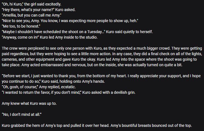 @Onlyfans_bot Hello, I'm Kuro! I post art I commission of my furry characters and write a story to go with them. Only $5/month!