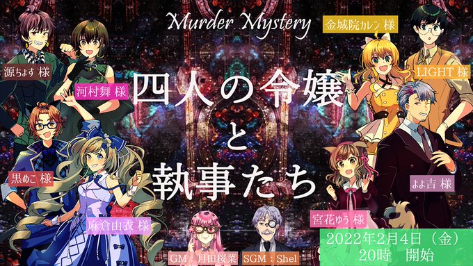 今夜は20時からYou Tubeにてマーダーミステリー 四人の令嬢と執事たち をプレイしてきます!