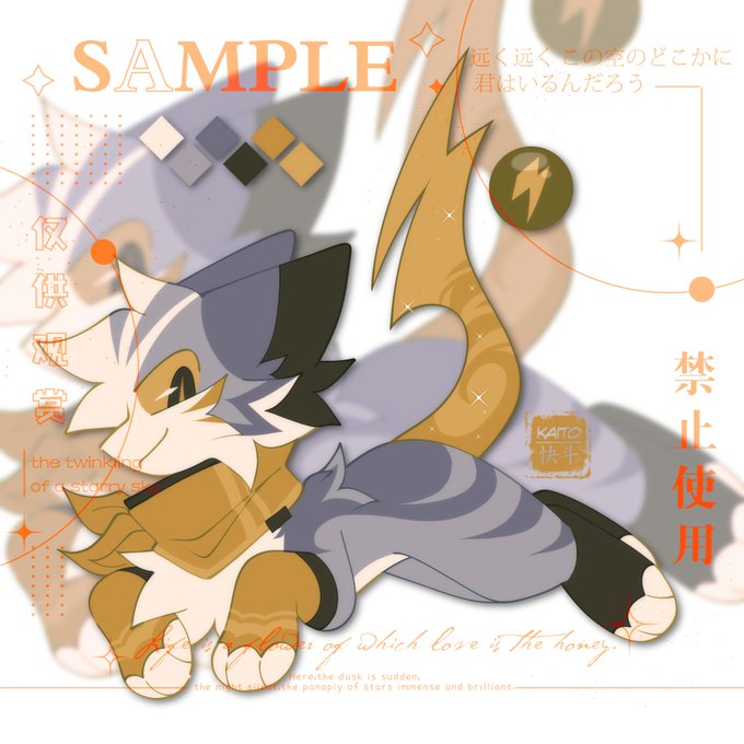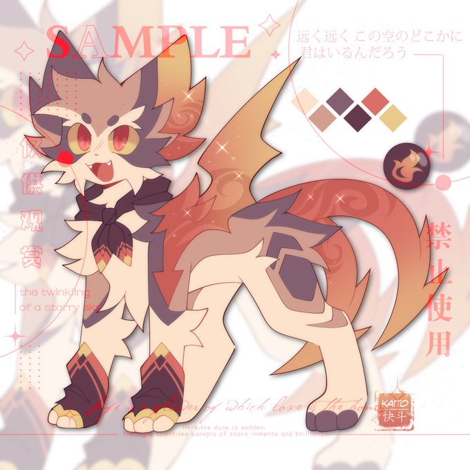 My original idea was inspired by Agumon but I couldn't draw dinosaur's anatomy so I chose an easier way to draw which is to keep the cat's anatomy.