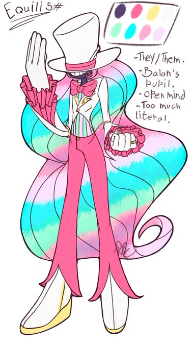 Clarice (Equili, the one with the hat), that at my au is Balan's pupil, Librium, Lance's pupil, and my chaotic nightmaren Nemesis. They're really important to me