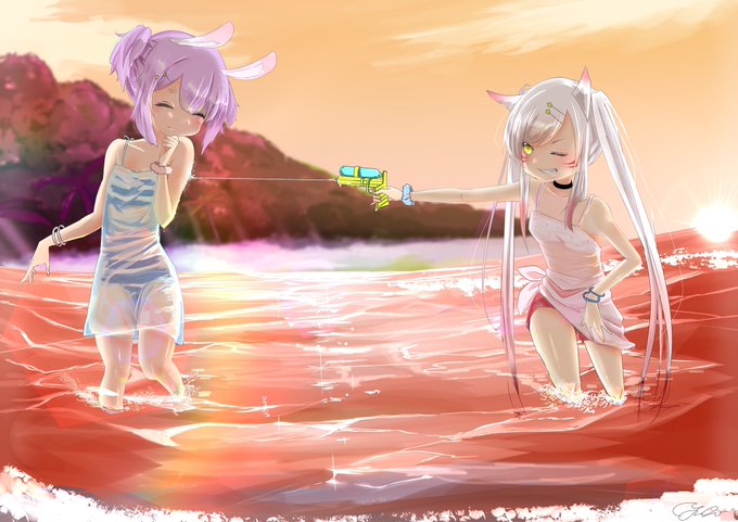 オリキャラの水遊び(*´∀`*) 目の色赤なのに何故か黄色で描いちまったやつ