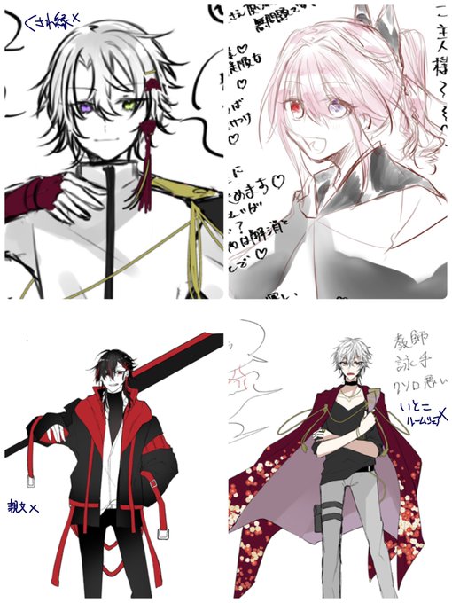 従兄弟が空いてるのは懺悔、憐、迅月、新規なんですけど。色合い的に迅月ともなちゃん、懺華と冬音ちゃん秋那くん..?こちらは母方
