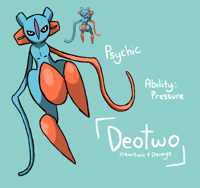 Another legendary fusion, Deoxys + Mewtwo!