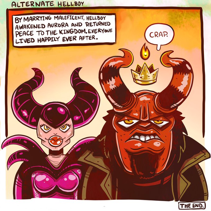 A comic I call “Alternate Hellboy”... By marrying Maleficent, Hellboy awakened Aurora and returned peace to the kingdom. Everyone lived happily ever after. @artofmmignola #hellboy #comics #mikemignola #bprd #comicstrip #comicstrips #comicsoftwitter #comicart #comics