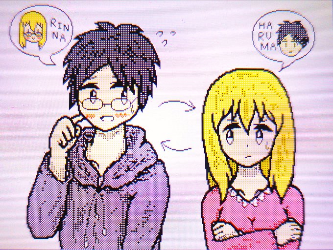 僕の中編小説『人間ごっこ』の仁君と詩音ちゃんで、入れ替わりイラストを描いてみました! この二人もカップルといえばまぁカップルっぽいので描いてあげないとね~♪
